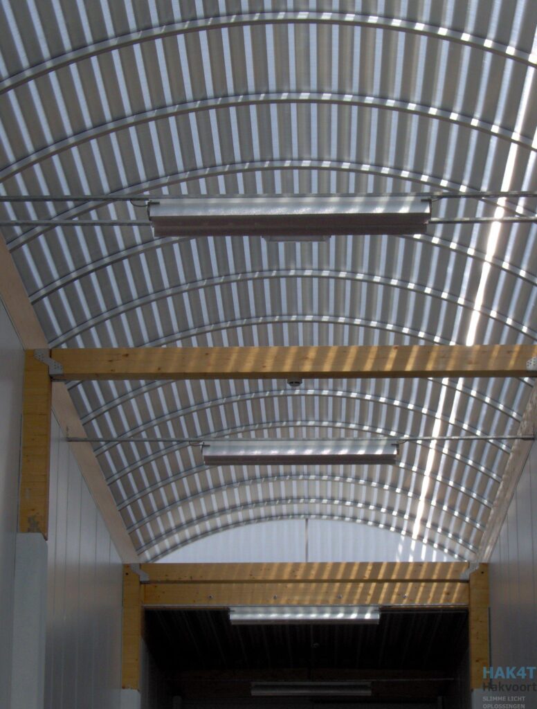 Kennisbank daglicht begrippen Daglicht begrippen Daksparing Het gedeelte wat uit het dak verwijderd moet worden om bijvoorbeeld een lichtkoepel of lichtstraat te plaatsen noemen we de daksparing. Dagmaat De dagmaat (ook wel binnenwerkse maat genoemd) is de maat van een opening waar natuurlijk daglicht door naar binnen kan treden bij bijvoorbeeld een lichtkoepel of lichtstraat. Buitenmaat De buitenmaat van de lichtkoepel (ook wel koepelmaat genoemd) is de meest buitenste maat van de koepel. Veelal is dit de dag maat +160 mm Diffuus licht Diffuus licht is een egaal licht zonder weinig of geen schaduwen. Diffuus licht komt van alle kanten. Het lijkt alsof er geen directe lichtbron is zoals bijvoorbeeld bij bewolking. U-waarde (isolatiewaarde) De U-waarde of warmtedoorgangscoëfficiënt beschrijft de hoeveelheid warmte die door de ene zijde van het glas naar de andere zijde van het glas toegelaten wordt per seconde, m² en per graad temperatuurverschil. Hoe lager de U-waarde hoe beter het glas thermisch isoleert. Zo heeft bijvoorbeeld isolatieglas een lagere U-waarde dan enkel glas. Polycarbonaat Bij onze lichtstraten wordt veelal polycarbonaat gebruikt. Dit omdat polycarbonaat zeer vormbaar, slagvast en sterk is. Polycarbonaat is 250x slagvaster dan een glasplaat van dezelfde dikte. Ook beschikt polycarbonaat over een perfecte lichttransmissie. Daarnaast is polycarbonaat in veel verschillende kleuren te verkrijgen. Verschillende opstanden Er zijn verschillende opstanden waar de lichtstraten op geplaatst kunnen worden. Zo kan de opstand gebogen zijn. Dit is erg belangrijk om naar te kijken voor het aanschaffen van uw lichtstraat. De meest voorkomende opstand is een vlakke opstand van staal. Geselecteerd speciaal voor u All Posts Producten Goedlicht randlicht ledpaneel Paneelverlichting Maatwerkverlichting