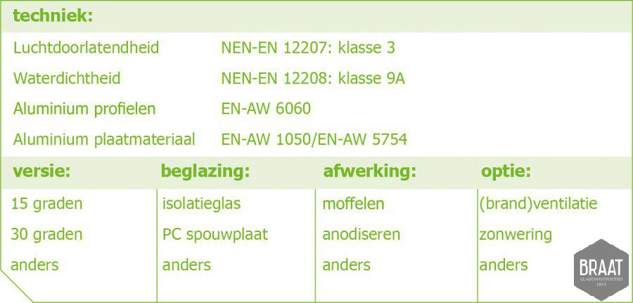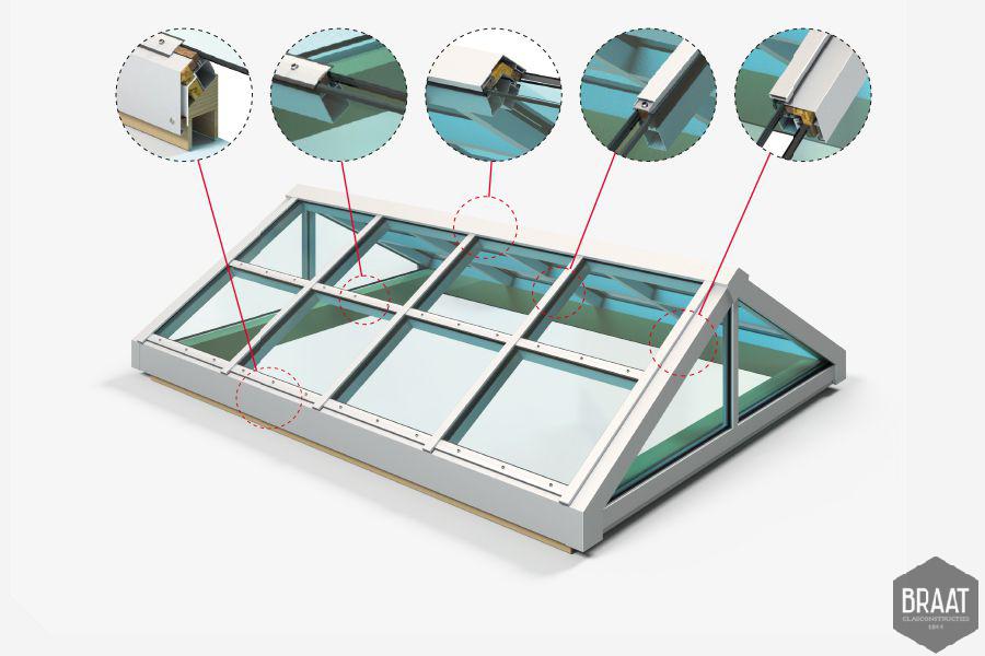 Wij, Braat glasconstructies 1844, hebben alle disciplines in huis die nodig zijn om glasconstructies voor dak of gevel te realiseren, van ontwerp tot installatie. Niet alleen zijn we op deze manier nauw betrokken bij het project, maar zo kunnen we ook in elke fase snel met elkaar communiceren. Elk project vraagt om een andere kijk op ontwerp of oplossing. Daarbij zorgen wij voor een zadelkap van glas op maat. Hierbij houden wij o.a. rekening met de afmetingen van de zadelkap. Denk hierbij aan lengte, overspanning en hoogte van de nok. Ook kunnen we rekening houden met de hoeveelheid lichttoetreding, afwerking, type profielsystemen, beglazing en verschillende opties.
